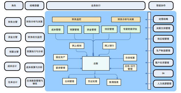 财务管理模块包括主要包括总账、应收款管理、应付款管理、固定资产、UFO 报表、网上银行、 票据通、现金流量、网上报销、报账中心、公司对账、财务分析、现金流量表等模块。这些 模块从不同的角度,实现了从核算到报表分析的财务管理全过程。