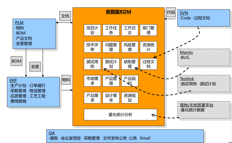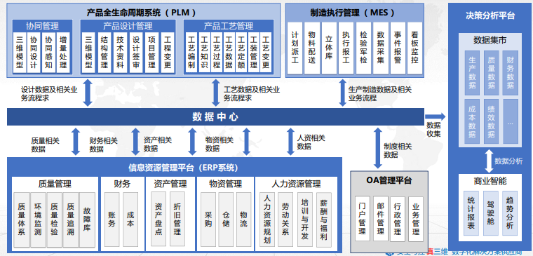 PLM/PDM系统为产品研发设计环节的管理系统,可实现图文档、编码及零部件的管理,为工艺、制造环节提供制造资源。